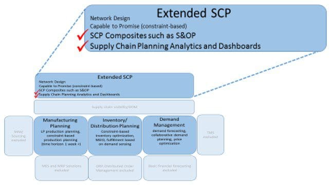 - Practitioners and vendors are “building off the foundation” of SCP. Meaning the greatest user adoption and supplier sales growth is coming from solutions – namely S&OP and analytics – that leverage core SCP functionality in a way that provides practitioners with a more holistic and valuable view of operations.