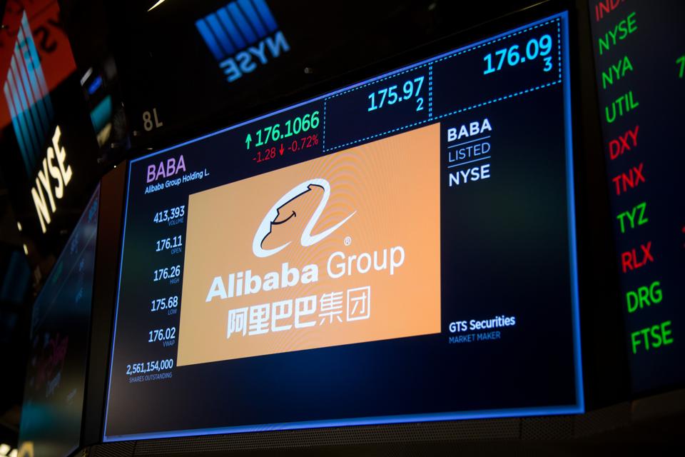 A monitor displays Alibaba Group Holding Ltd. signage on the floor of the New York Stock Exchange (NYSE) in New York, U.S. Photographer: Michael Nagle/Bloomberg