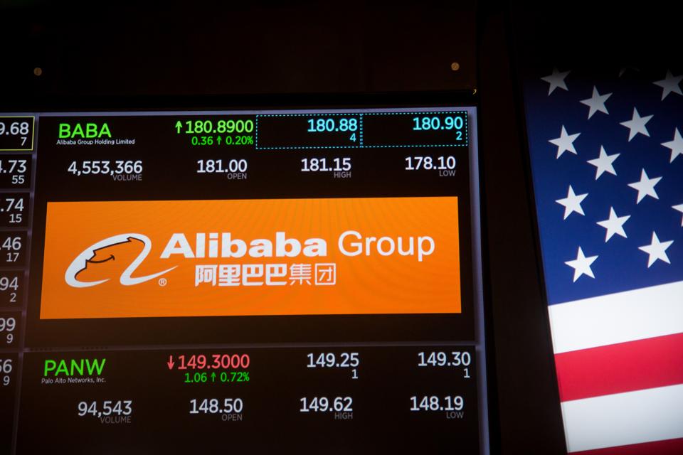 A monitor displays Alibaba Group Holding Ltd. signage on the floor of the New York Stock Exchange. Photographer: Michael Nagle/Bloomberg
