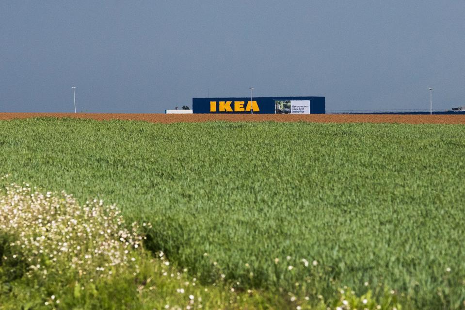 An Ikea AB store sits beyond agricultural fields where the Europacity shopping and leisure complex, developed by Auchan Holding SA and Dalian Wanda Group Co., is planned in Gonesse, France, on Friday, May 12, 2017. Gonesse is the future home, local officials hope, of EuropaCity, a 3.1-billion euro ($3.4 billion) shopping and leisure complex being developed by grocery giant Auchan and Chinese billionaire Wang Jianlin’s Dalian Wanda. Photographer: Christophe Morin/Bloomberg